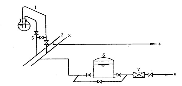 1-鹤管;2-真空管;3-集油管;4-真空罐;5-抽底油管;6-零位油罐;7-离心泵;8-储油区