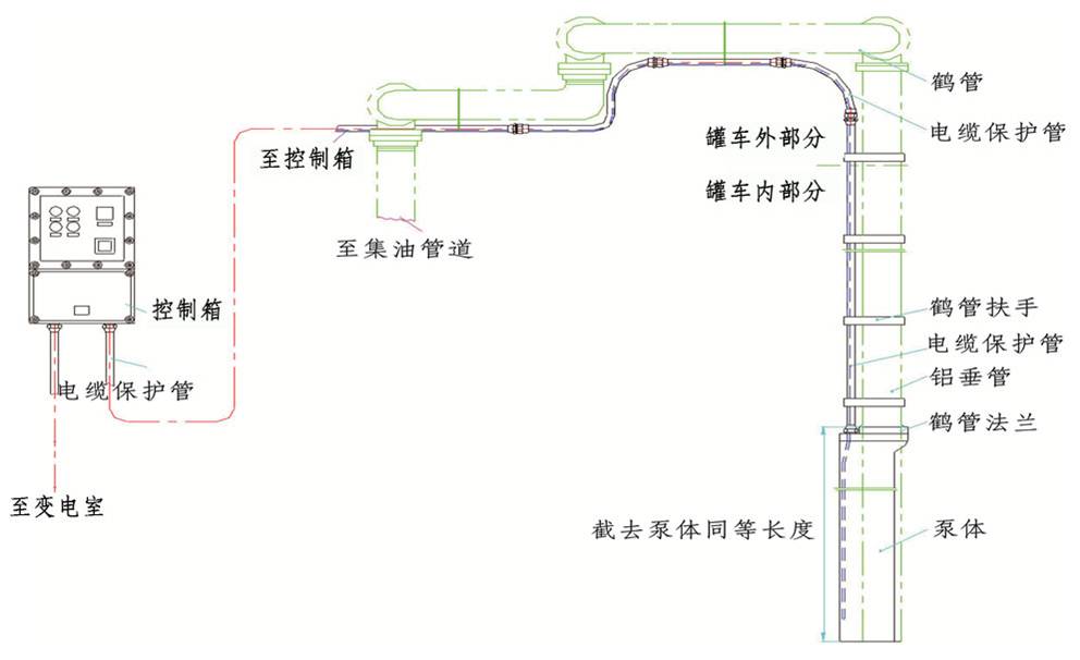 槽车停到位后,人工将电动鹤管潜油泵放入油罐内;