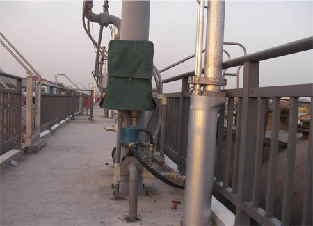 将厂家提供的鹤管法兰与铝垂管焊接成一体;