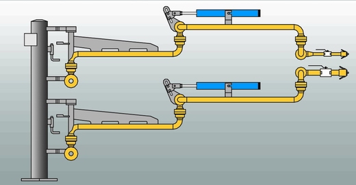 一种气动潜油泵火车装卸油鹤管,包括水平长管和垂直等构件 ,其特征在于