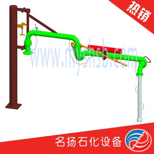 AL1402型汽车顶部装车鹤管是一款专为槽车顶部装卸原油、化工介质生产设计制造的一款专用设备。此设备通过旋转灵活的旋转接头(万向节)跟管道连接,通过末端的垂管,垂管经过槽车顶部的罐口进入到罐底进行作业,具有操作简单、使用安全、使用寿命长等特点。